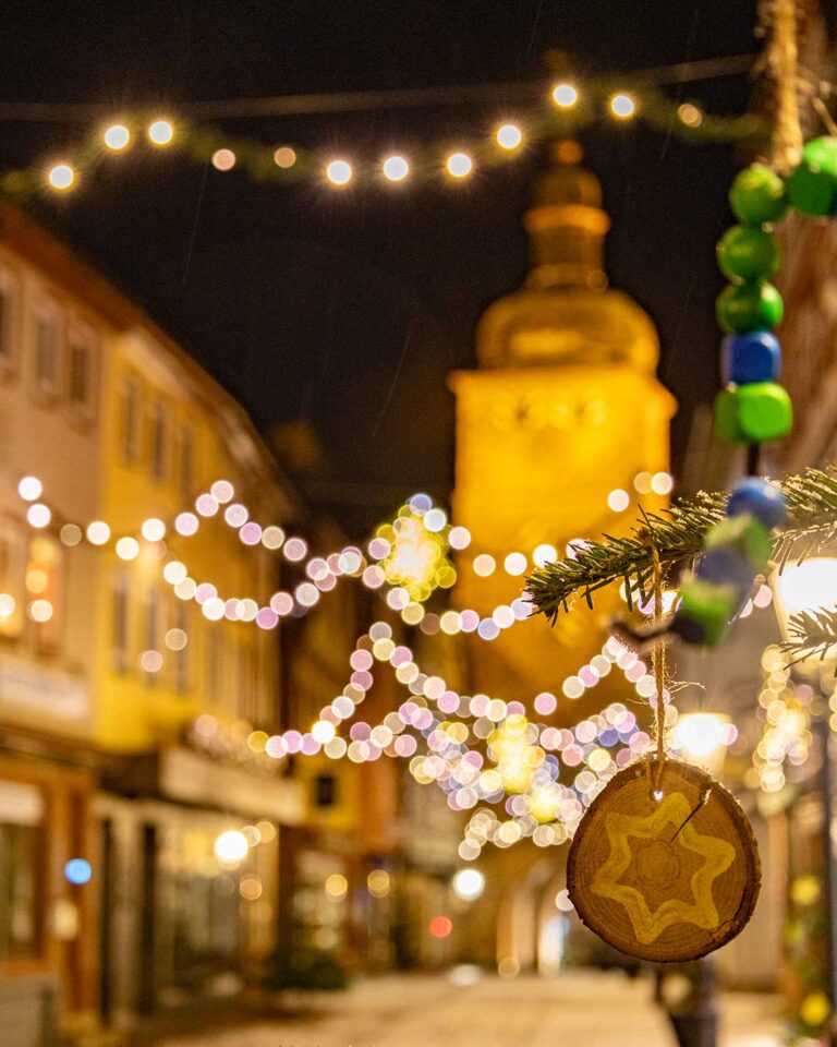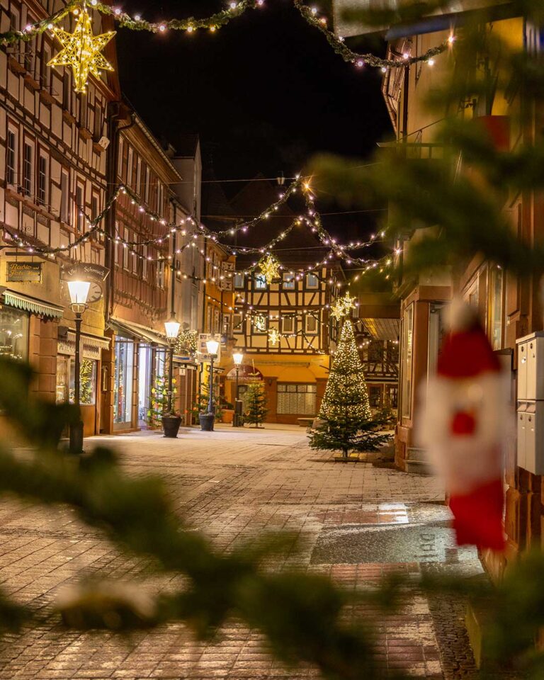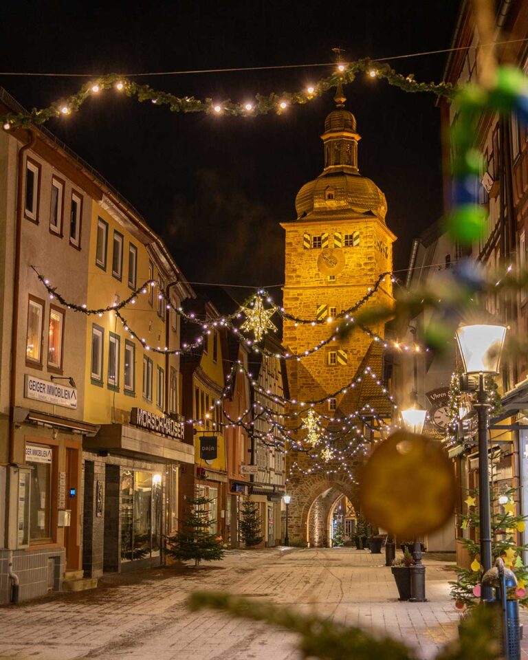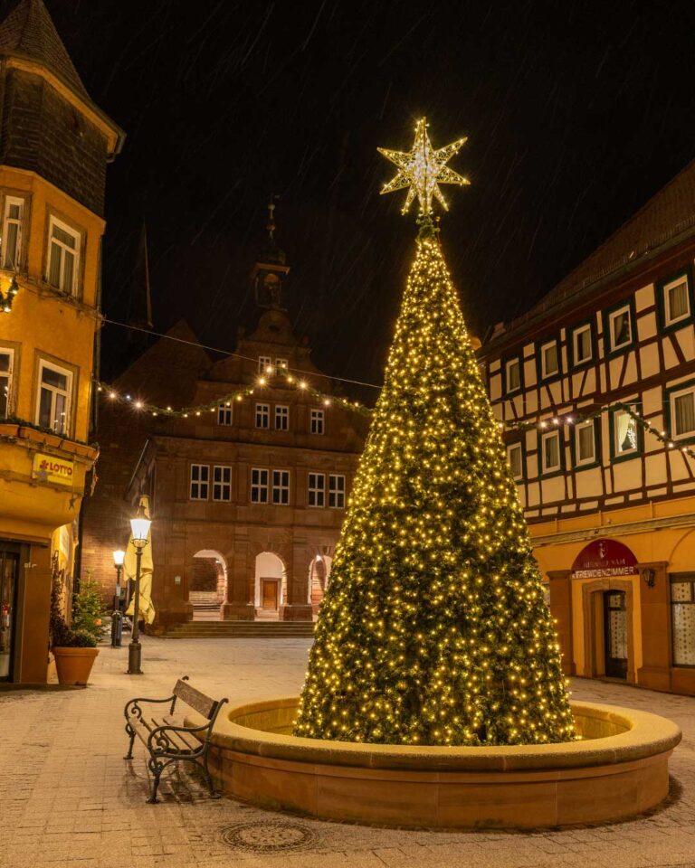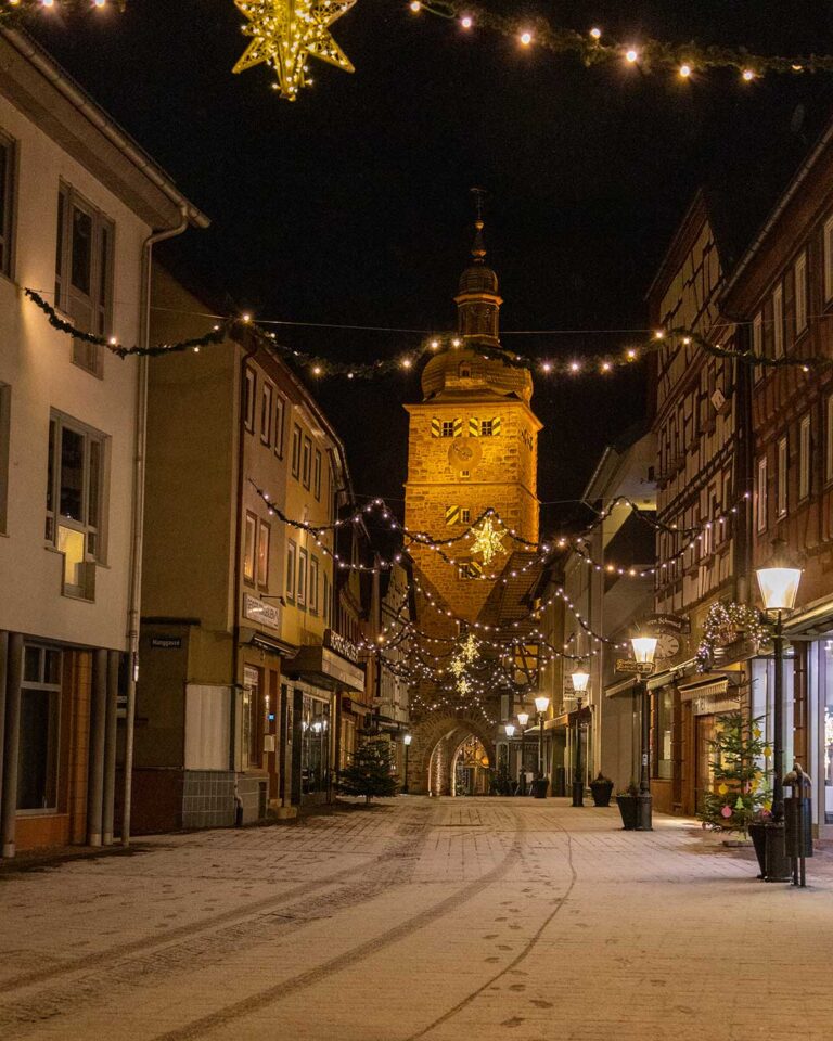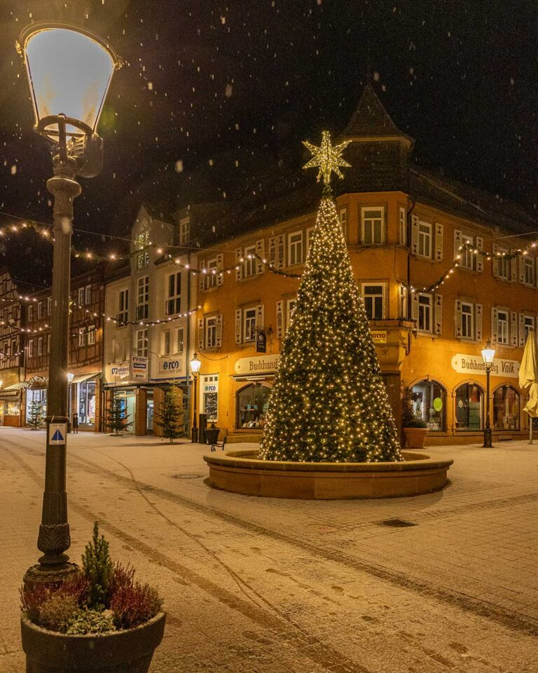 Aber weil es in Buchen ja immer zwei Grad kühler ist als anders wo, hat Petrus gestern abend eine Puderzucker-Decke über Buchen gelegt. So sieht’s dann in der Marktstraße in Buchen aus. Und – man darf überrascht sein – die Innenstadt ist auch an einem Montag Abend gut besucht. Gerade wenn man Fotos ohne Menschen machen will – Gassi-Gänger, Radfahrer, Jugendliche, …